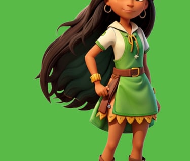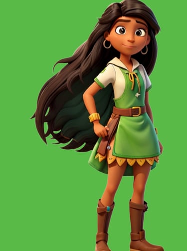 Em meio à exuberante floresta, onde a vida pulsa em cada folha e o ar vibra com o canto dos pássaros, vive Janaina, uma jovem com um coração valente e um espírito ligado à natureza. Desde pequena, Jana aprendeu com sua comunidade os segredos da floresta, seus ciclos e a importância de cada ser vivo que a habita. Com o tempo, Jana desenvolveu uma conexão profunda com a floresta, quase como se ela própria fosse parte da natureza. Essa conexão se manifestou de forma extraordinária: Jana podia sentir a energia vital da floresta fluindo através dela, concedendo-lhe força, agilidade e a capacidade de se comunicar com os animais.